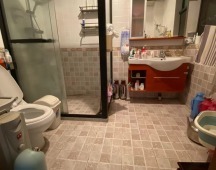 岳阳苑汽车库35平方,精致装修,墙上加工砖,整体淋浴房,独立厨房间,空调热水器等齐全,卖13.8万,租680元一月