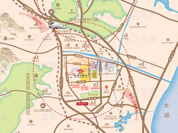 全功能·大规模·一站式商业航母:紫砂文旅城,超前规划,国际领先,集"紫砂文化、五星酒店、紫砂剧场、餐饮美食、休闲娱乐、教育培训、精品购物"等业态功能于一体,建成后将成为丁蜀镇“规模大、业态全、品类多、配套完善,管理先进"的一站式休闲娱乐天堂。