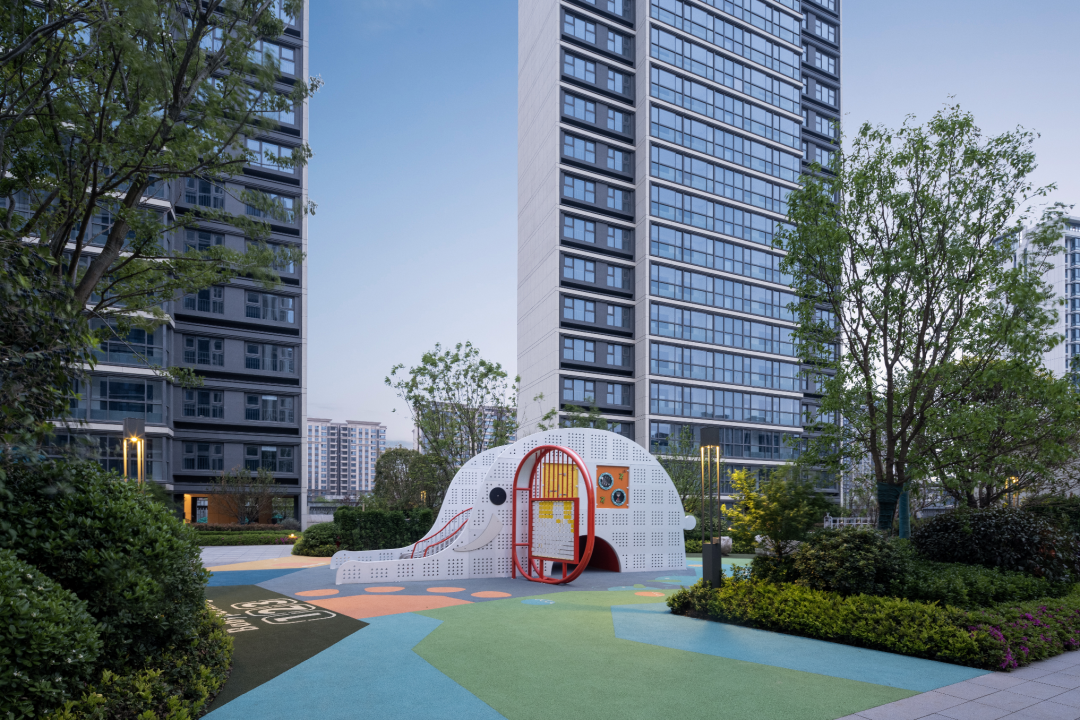 咫尺湖岸的旖旎风光、南低北高的错落式楼栋排布,让居家生活与湖更亲密。大面积的落地玻璃窗,赋予建筑灵动、轻盈的通透感,真石漆配以金属线条,在严苛选材和精细化处理的基础下,呈现一座座宛如光影交错的玻璃建筑,既拓宽了视野,也消融了生活与自然的边界。中央水景在阳光下熠熠生辉、中央花园营造邻里社交场景、孩童“大象主题IP”乐园营造快乐时光、时光走廊无惧风雨侵袭、架空层营造全龄趣味日常,每一步都是风景的流连……