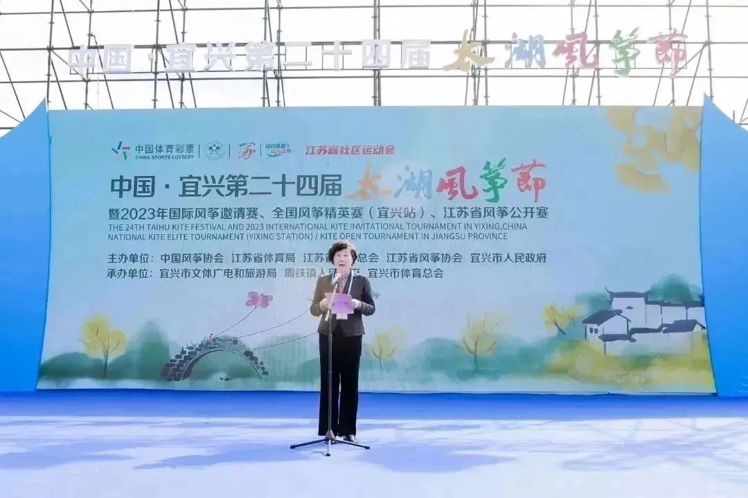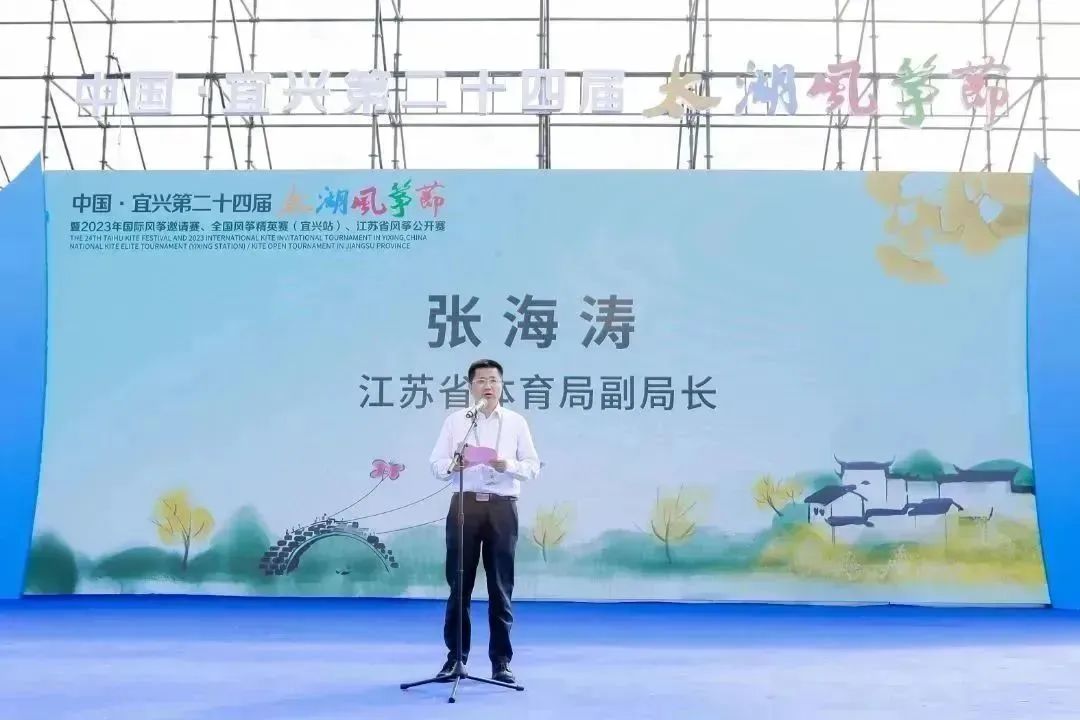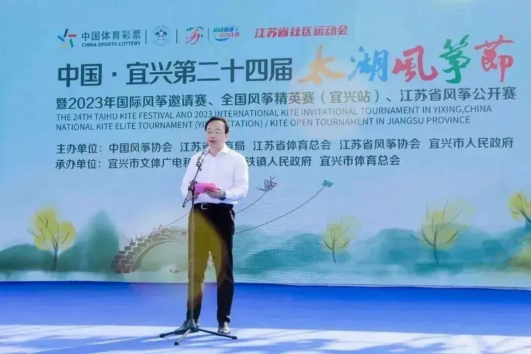 中国风筝协会主席刘北剑,江苏省体育局副局长张海涛,宜兴市委副书记、政法委书记沈晓红,无锡市体育局局长陈奕,江苏省体育总会秘书长傅雷,宜兴市委常委、纪委书记、监委主任张静红,宜兴市人大常委会副主任裴焕良,宜兴市副市长张毅,宜兴市副市长、公安局局长周杰,宜兴市政协党组副书记、副主席周斌,宜兴市政协党组成员、市发展和改革委员会主任钱西元等领导出席开幕式。