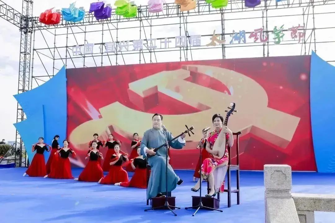 开幕式上,以风筝为媒,以体育会友,文艺表演精彩不断。原创作品舞蹈《五湖秋晓》、情景表演《回家》、评弹《党旗指方向》等表演轮番登场,向大家展示了“古镇儒风,湖韵周铁”的独特魅力。