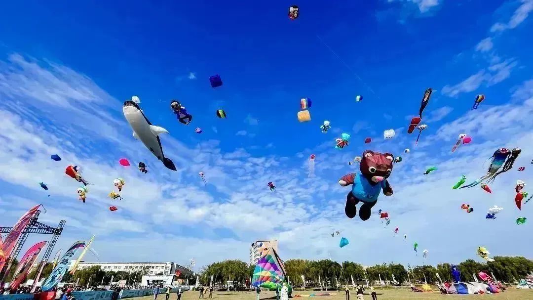 场上,龙串类、软板串类、硬翅串类、动态类、板鹞类等竞赛项目轮番进行。各种造型各异的大型软体风筝、滚地龙风筝亮相登场,上千只鲜艳夺目、形状各异、各具特色的风筝起舞盘旋,场面蔚为壮观。