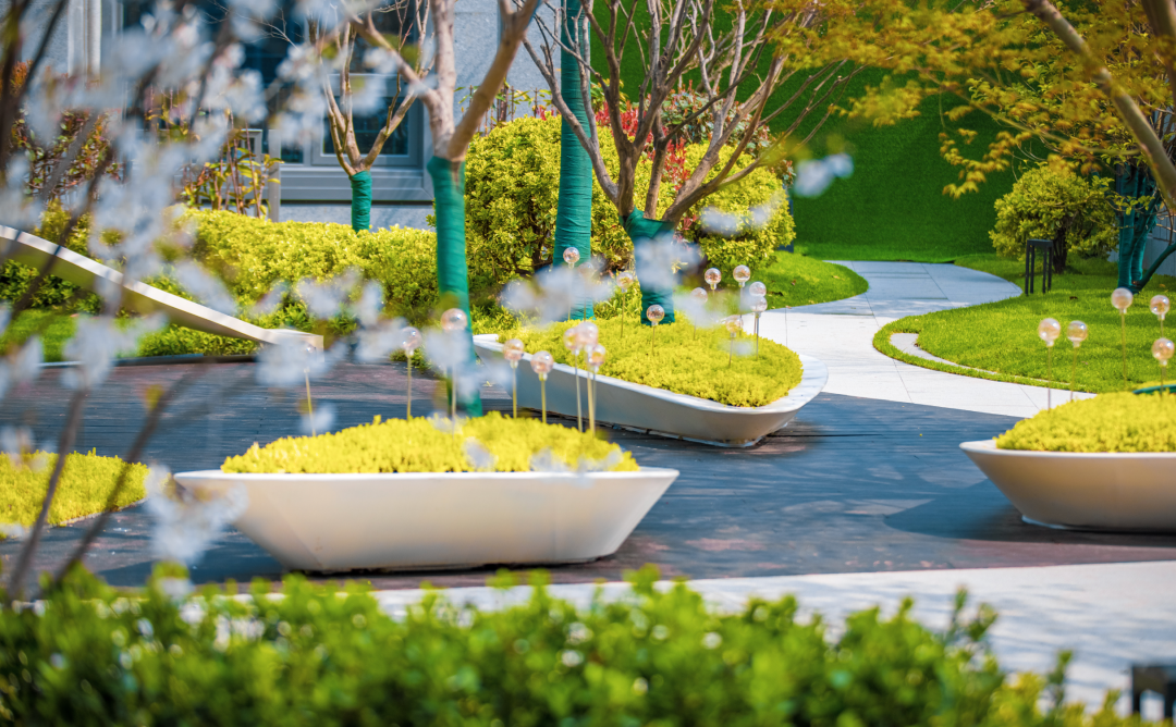 此时,和爱人牵手漫步在楼下的园林
