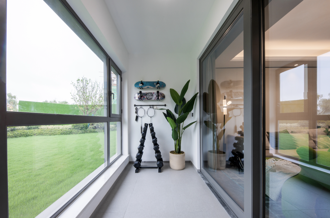 手磨一杯咖啡,踱步至宽敞阳台