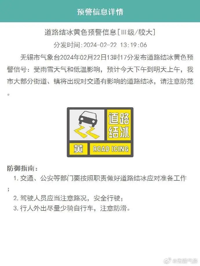 道路结冰黄色预警!宜兴已有路面开始打滑!