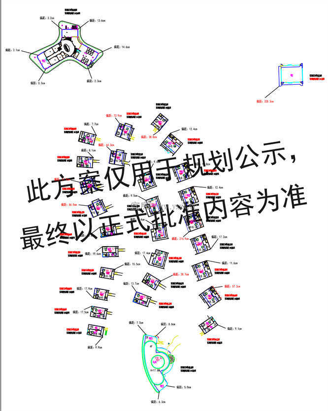 本次项目在实施过程中一共有9栋发生了位置偏移,并超出误差范围,经审定,对规划无明显负面影响,现予以方案变更。