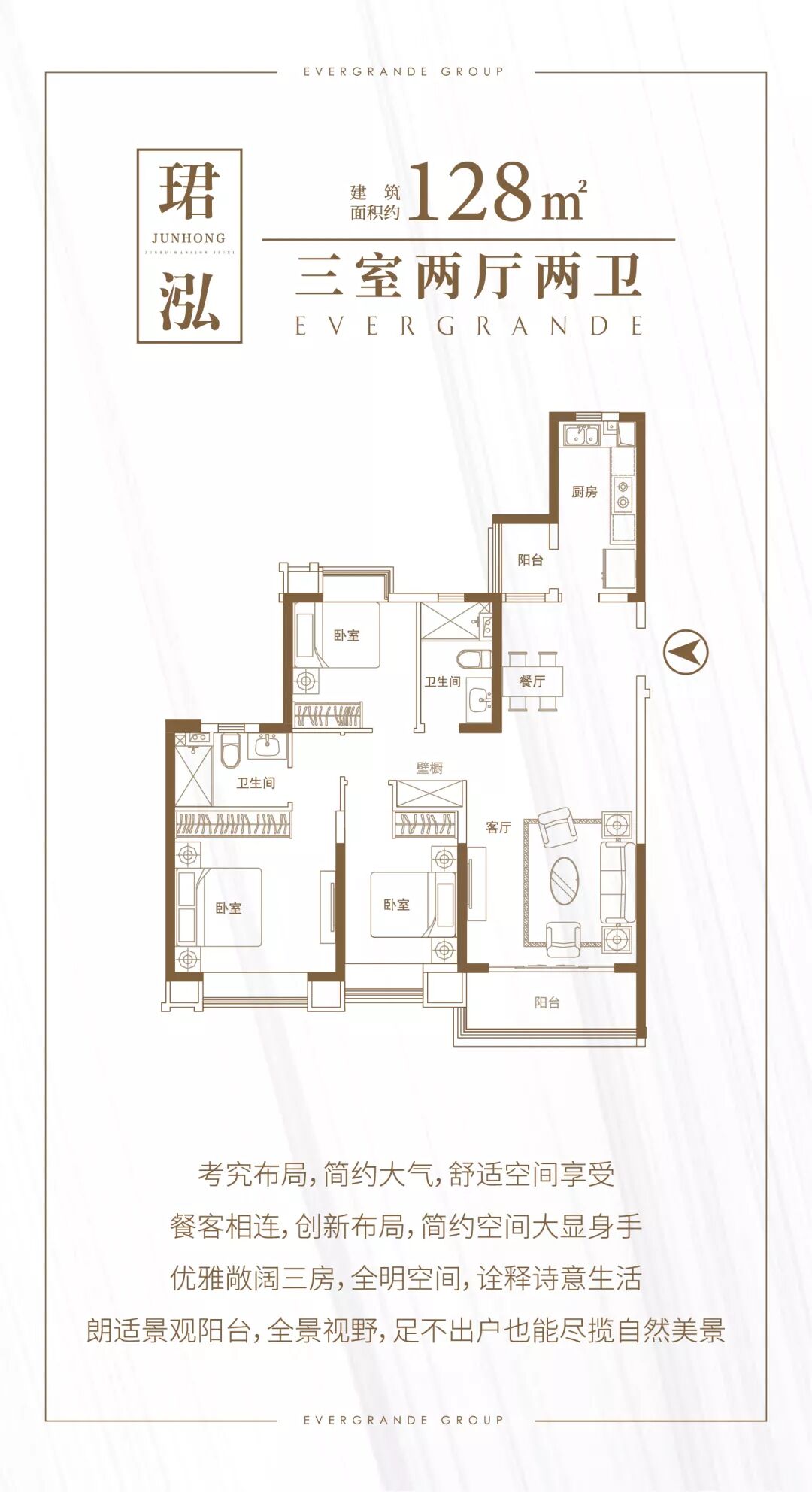 追求舒适的居家生活,阳台必定是不可或缺的,精心打造南北双阳台设计,一方阔绰的景观阳台,俯瞰四季花香满径,悦享阔境美景,一方实用的生活阳台,紧邻厨房,洗、晒、晾于一体,更多储纳空间,居室更整洁舒适。南北双阳台,最大程度提升幸福感。